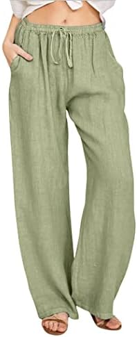 “CHARTOU Women’s Summer Cotton Linen Palazzo Pants with Drawstring Waist”
