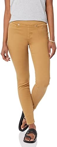 Amazon Essentials is a brand that focuses on creating affordable, high-quality, and durable everyday clothing for women. Their line of apparel includes cashmere sweaters, fleece and down jackets, and plus-size options. The sizing is consistent, making shopping easier, and each piece is tested to maintain the highest standards in quality and comfort. The package dimensions are 12.13 x 10.31 x 1.54 inches, and the item model number is AE1903454. It is available for purchase from March 31, 2022. The manufacturer is Amazon Essentials, and the ASIN is B09H7TQJKS. The product is imported and has a pull-on closure. It can be machine washed. The jeggings have a skinny fit, sitting below the natural waist with a snug fit through the hip, thigh, and leg. The denim material is super stretchy, soft, and comfortable while maintaining an authentic denim look. These jeggings can be worn as an everyday option, providing extra comfort and ease with a slim and flattering silhouette that allows for endless styling options.