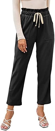 Features: drawstring elastic high waisted pants for women, two large pockets, straight leg pants, loose fit, vintage pants