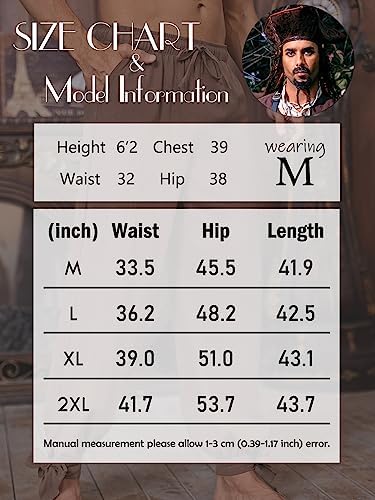 – These unisex Renaissance pirate trousers have an elastic and drawstring waist for an adjustable fit.
