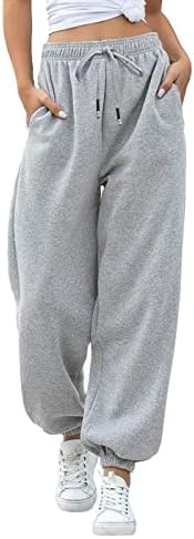 These sweatpants for women are lightweight and have a baggier fit. They have an adjustable waist and cinched bottoms. The sweatpants are loose-fitting, lightweight, and have an elastic high waist. They also feature classic big pockets on both sides. The material is of medium thickness and suitable for lounging in and moderately cold weather, but not for extremely cold weather.