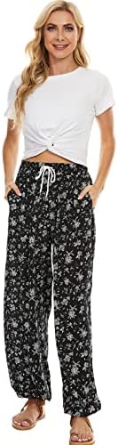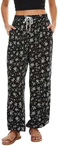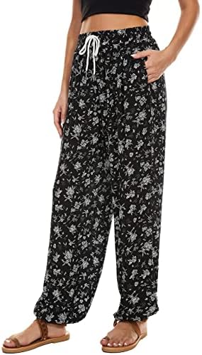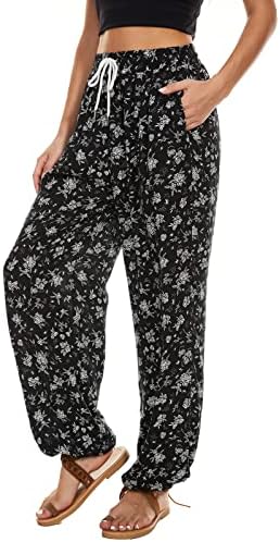 “BATHRINS Women’s Floral Harem Pants: Stylish High-Waisted Boho Pants with Pockets for Summer”