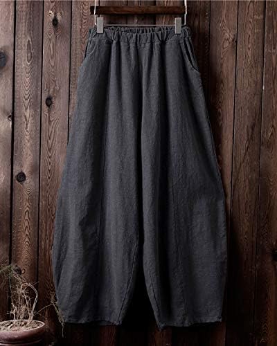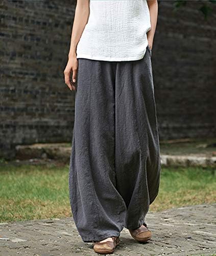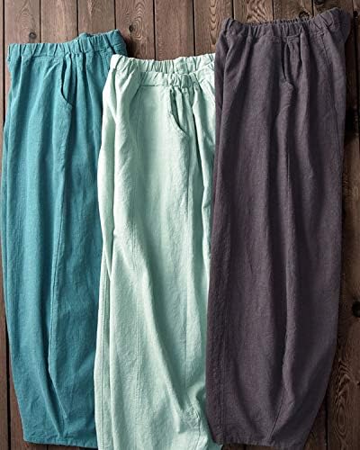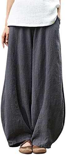 IXIMO Women’s Casual Cotton Linen Baggy Pants: Elastic Waist, Relax Fit Lantern Trouser