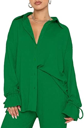 BUY NOW – LYANER Women’s 2 Piece Outfits Button Down Long Sleeve Shirt and Wide Leg Pants Set