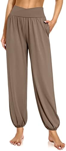 “UEU Women’s Harem Crossover High Waisted Flowy Pants: Stylish and Comfy Lounge Sweatpants with Pockets”