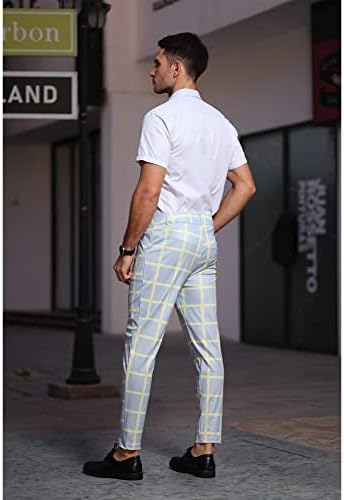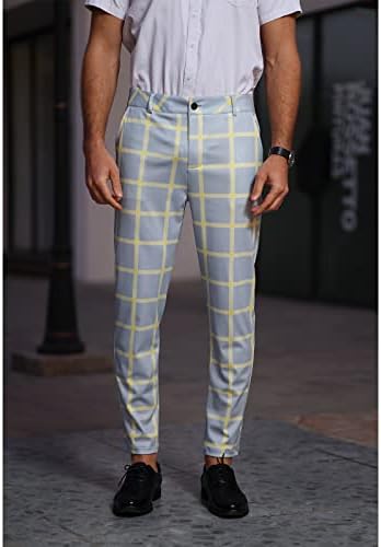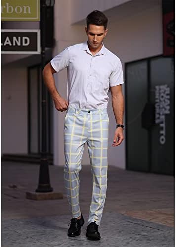 Men’s Skinny Fit Plaid Stretch Dress Pants
