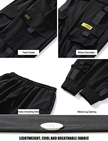– HIP HOP CARGO PANTS: Features a multi-pocket and streamer design, combining classic hip-hop with personal style. Stand out from other street cultures with this unconventional design. The trousers are made with elastic nylon for practicality, making sports activities like skateboarding and jogging more convenient and simple.