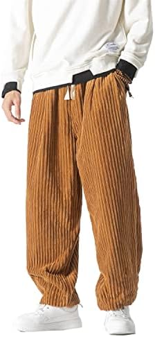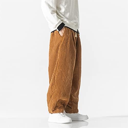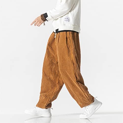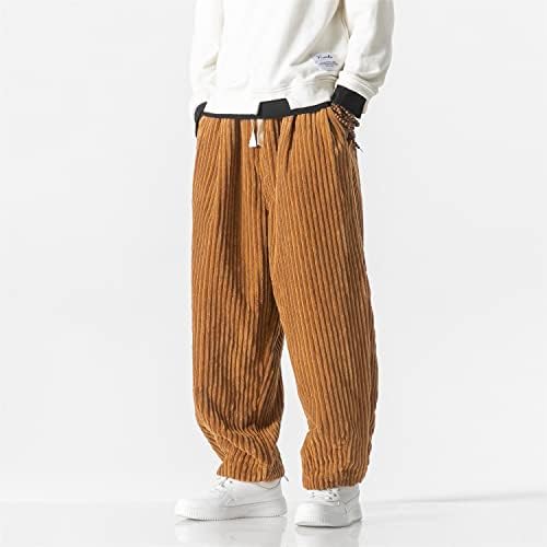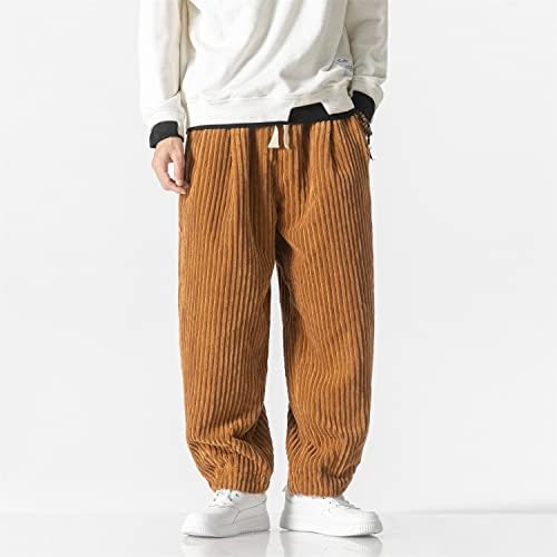 The pants have a drawstring closure and can be machine washed. They feature a straight fit, corduroy material, elastic waist and foot mouth, baggy Streetwear style, 2 slant patch pockets, and a drawstring waist. They come in a solid color and have a classic length.