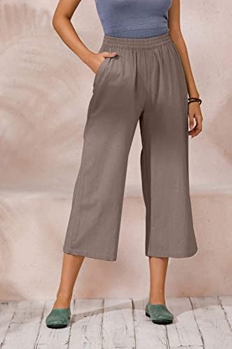 ECUPPER Women’s Wide Leg Cropped Pants with Elastic Waist