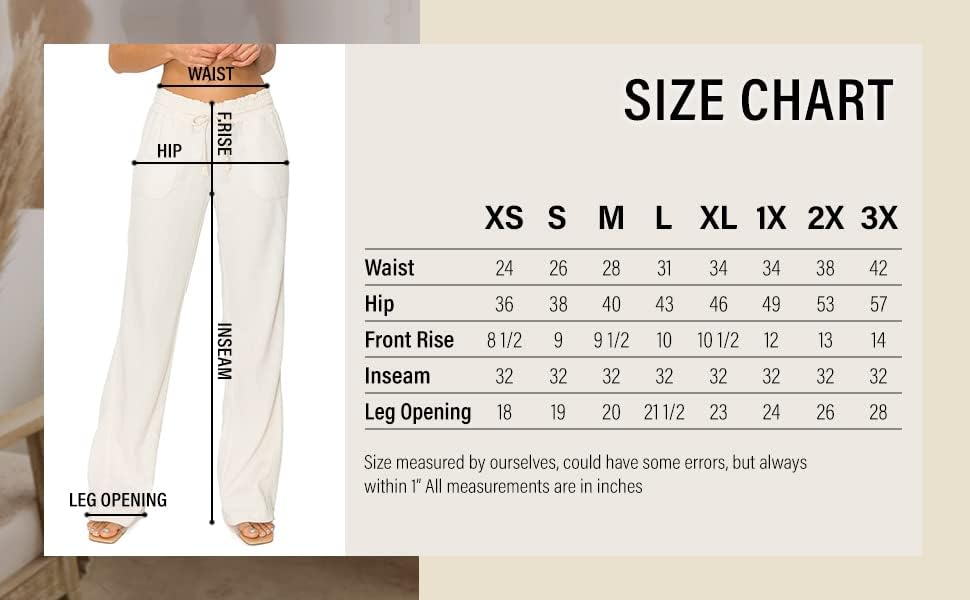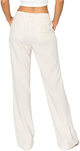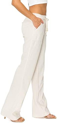 Cali1850 Women’s Linen Pants – 32″ Inseam Lounge Beach Trousers with Pockets