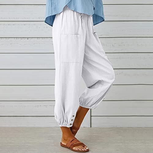 Women’s Casual Flax Ankle Trousers with Pocket: Loose Fit Harem Pants