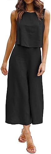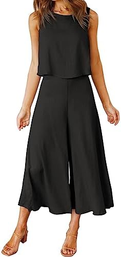 – Design & Features: 2 piece outfits for women, Fashion Color Round neck Crop Basic Top with Wide Leg Pants, Summer Sleeveless 2 Pice Outfits Set, Cropped length Pants, back use Zipper and elastic waist Design, Elastic loose Two Pieces Outfits. Show your own style.