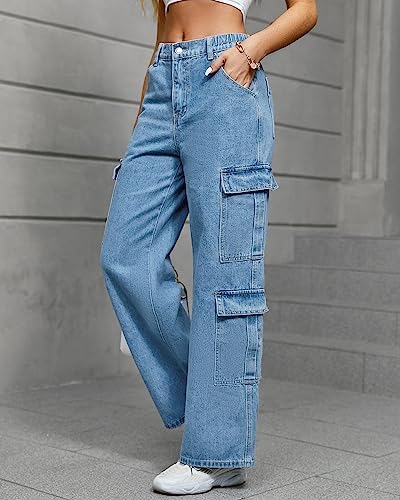 Product 1: Women’s Cargo Pants Elastic High Waist Wide Leg Cargo Jeans