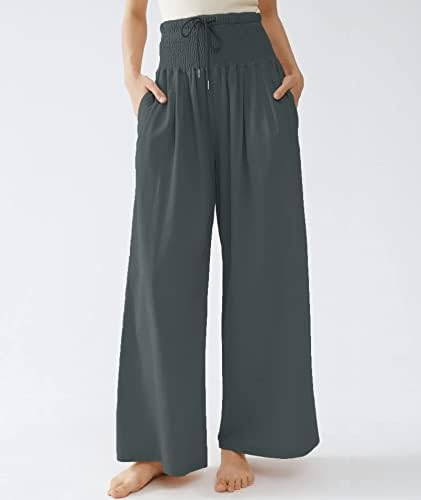 – Feature: Solid color linen pants for women with a smocked big elastic waistband, front drawstring design, and high waist. Wide-legged pants.
