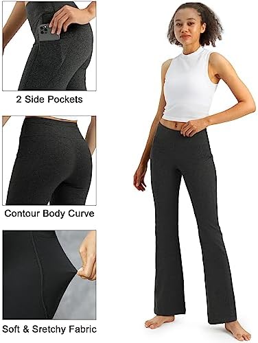 “Women’s 30″ Bootcut Yoga Pants: High Waisted Flare Leggings with Pockets and Tummy Control”