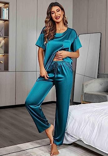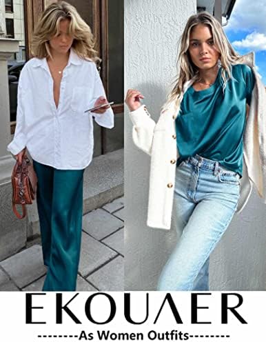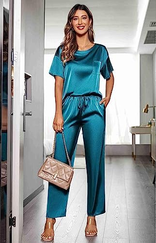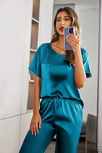 Ekouaer Women’s Satin Pajama Set: Short Sleeve Shirt with Long Pants