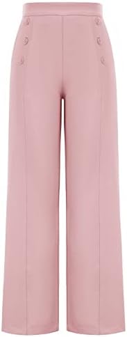 “Belle Poque Women’s Wide Leg Pants with Button Decorated Pockets”
