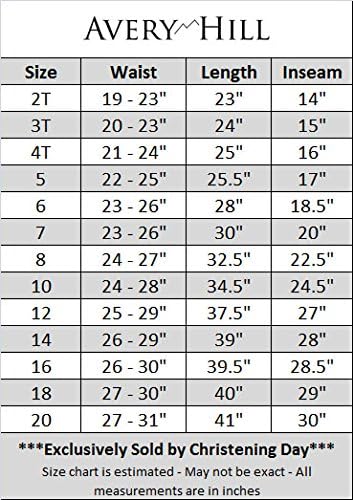 Versatile boys dress pants with a matching belt. Can be paired with dress suits or dress shirts for a more formal look. Comfortable enough to be worn as a daily school uniform. The product dimensions are 8 x 6 x 0.5 inches and it weighs 1.6 ounces. The item model number is 712691775562 and it is designed for boys. It was first available on April 27, 2016, with the ASIN B01EVN43MM. The pants are imported and have a zipper closure. They feature a flat front design and come with a matching belt. There are two side pockets and one back pocket. The waistline has elastic sides and belt loops. The pants are made of 100% polyester and are suitable for chapel, church, or any formal events.
