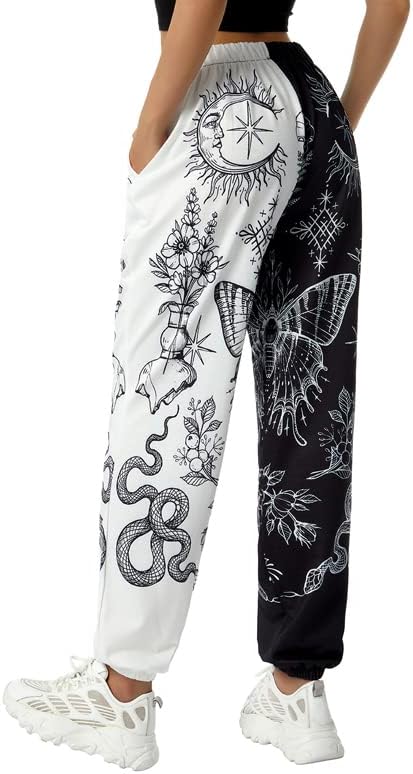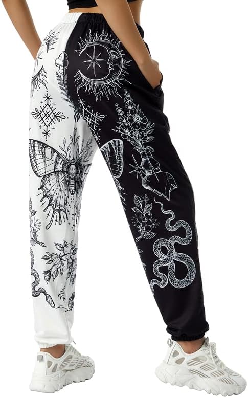 BUY NOW – Amuver Women’s Boho Hippie Harem Pants High Smocked Waist Printed Patchwork Sweatpants Yoga 90S Goth Baggy Casual Trousers