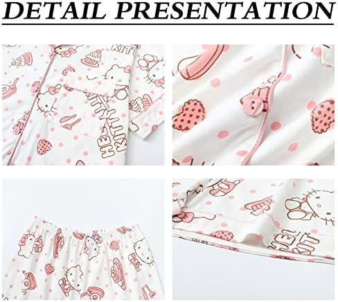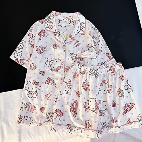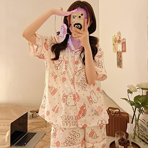 BUY NOW – Kawaii Cartoon Pajamas Two-Piece Set Cute Kitten Pajamas Women’S Pink Casual Shorts Sleepwear Pajamas Set