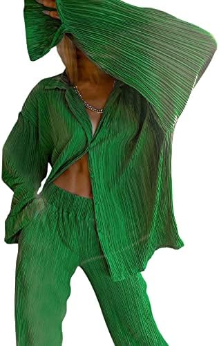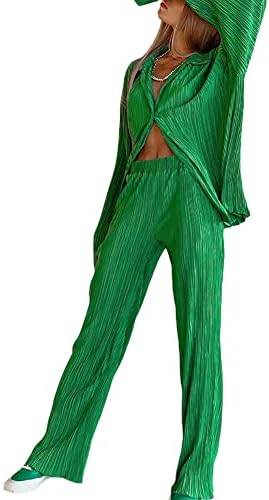 Wide Leg Pants Sets Women 2 Piece Outfits Casual Long Sleeve Button Down Shirt Linen Pants Outfits