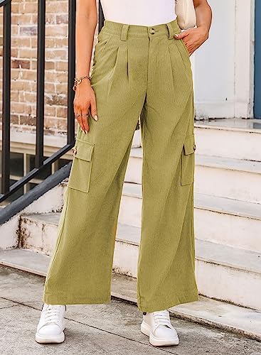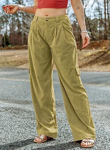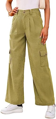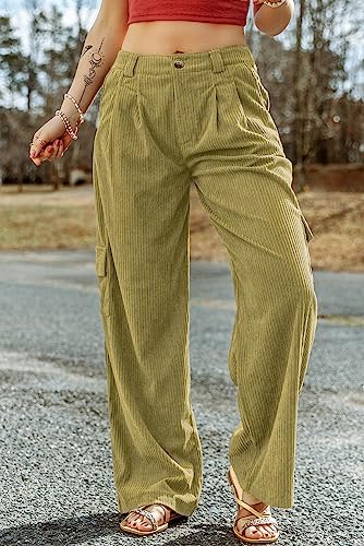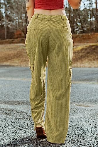 “Dokotoo Corduroy Cargo Pants: Stylish High-Waisted Trousers with 4 Pockets”