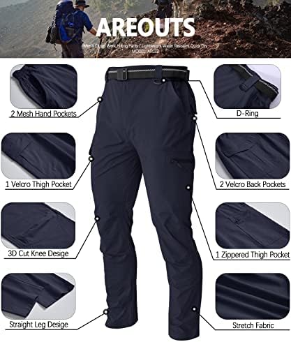 The AREOUTS Men’s Lightweight Ripstop Cargo Hiking Pants are designed to provide superior mountain outdoor work gear. These pants are made of lightweight ripstop nylon and high-performance stretch fabric, making them lightweight, breathable, and stretchy. They also have a UPF 50+ rating for sun protection. The pants feature reinforced and encrypted seams, making them durable and suitable for outdoor sports such as hiking, fishing, traveling, working, mountaineering, and hunting. The pants are water and dustproof and have articulated seams for added comfort. They also have a D-ring and 3D cut knee for enhanced functionality. The pants come with a belt and have a weight of 0.68 lbs.
