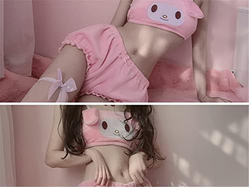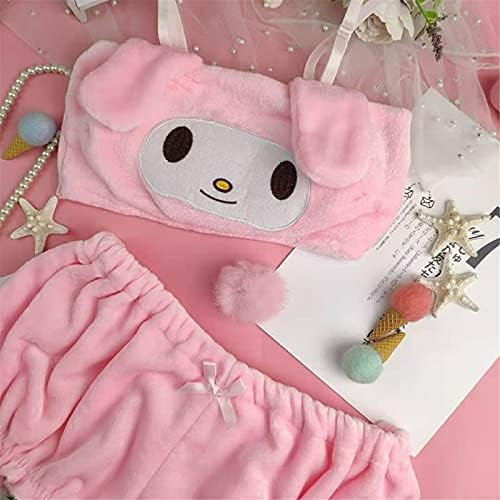 BUY NOW – lierde Plush Pajamas Sets Women Cute Bra Tube Top and Shorts Anime Cosplay Sleepwear Suits