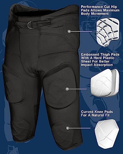 – Features: Padded Compression Shorts, Youth and Adult sizes available, Integrated Football Pants, Football Jersey & Padded Shirt, Groin Protection