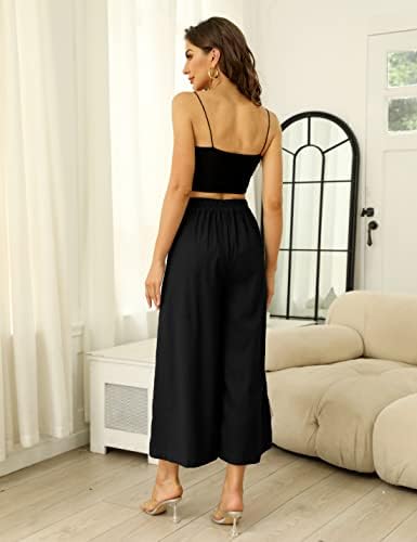 “Bianstore Women’s Linen Culottes: Stylish Wide Leg Pants with Elastic Waist and Pockets”