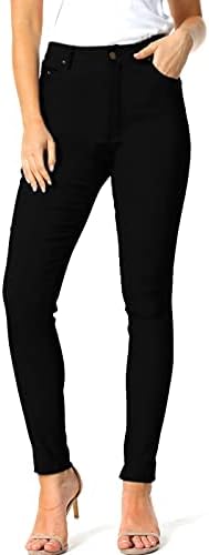 The product is a pair of skinny pants for women. It is made of premium ultra stretch fabric that contains spandex for added comfort and flexibility. The pants have a flattering skinny fit and a mid-rise waist. They feature functional front and back pockets and have a zip-fly closure. The stretchy waistband provides all-day comfort and ease of movement. The pants are versatile and can be worn with a blouse and leather jacket for a stylish look or for casual lounging. They are easy to care for and can be machine washed.