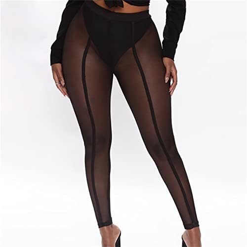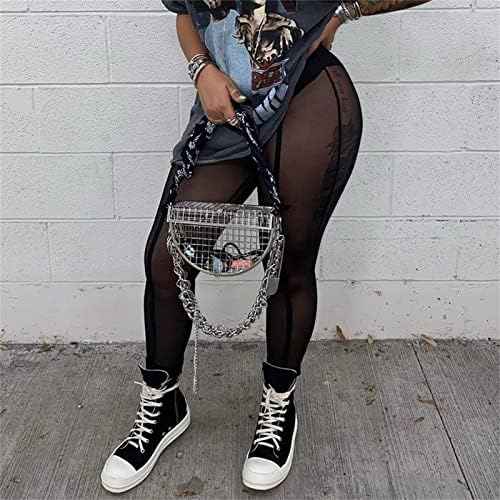 Atyfuniby Women’s High Waisted Leggings – Sexy Mesh See Through Pants for Party Clubwear