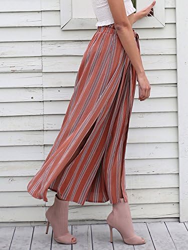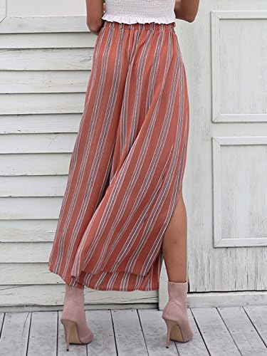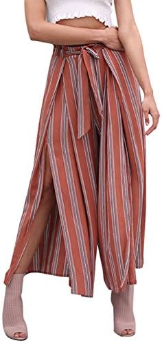 BUY NOW – BerryGo Women’s Boho Linen High Waist Pants Split Flowy Stripe Wide Leg Pant