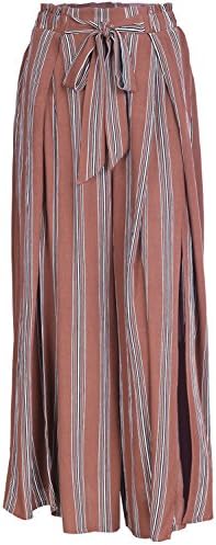 BerryGo Women’s Boho Linen High Waist Pants with Split Flowy Stripe Wide Leg