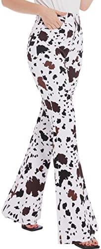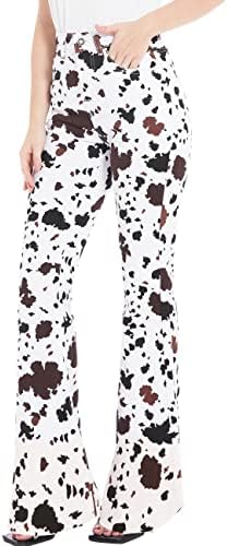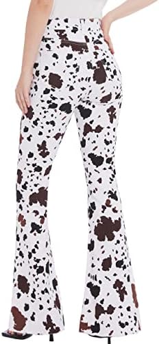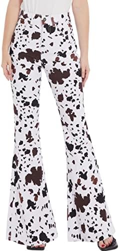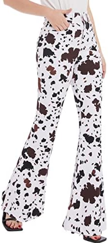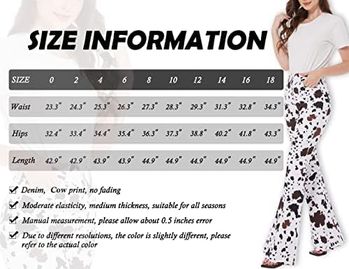 – Flared Jeans Design: The design of the flared jeans creates a retro feeling. The long flared pants and the big flare are very suitable for matching with boots. Brown and white cow graphic print craft, cute and fun. The high-waist design enhances the waistline, and the hip-lifting design highlights the curve of the buttocks, highlighting your charming figure as a whole.