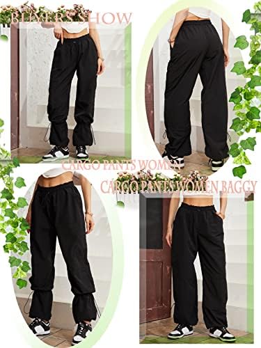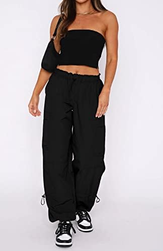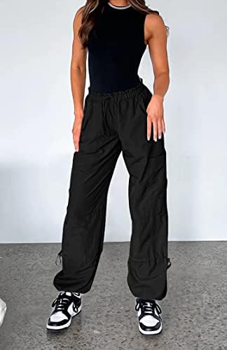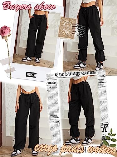 MIRJXB Women’s Y2K Parachute Pants with Drawstring Waist and Multiple Pockets