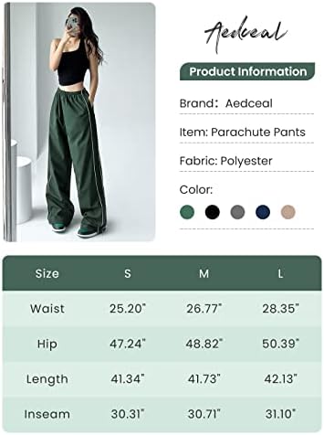 BUY NOW – Aedceal Women’s Parachute Pants Baggy Y2K Elastic Waist Wide Leg Track Pants Trousers