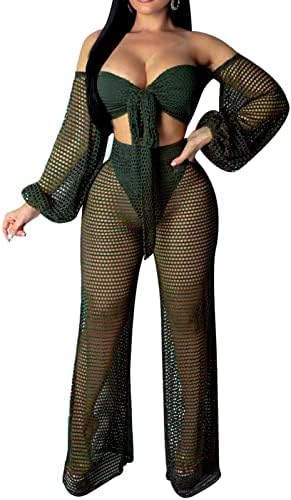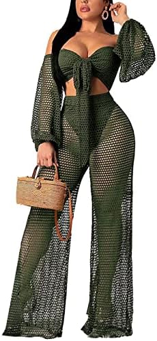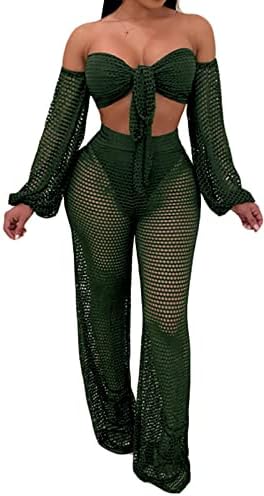 Women’s Elegant Floral Off Shoulder Two Piece Pant Set: Perfect for Beach Vacations and Swimsuit Cover-ups