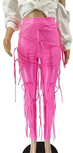 BUY NOW – Orinyou Women Faux Leather Fringe Y2K Pants Stretch PU Skinny Tights Sexy Clubwear