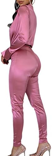 BUY NOW – xxxiticat Women’s Silk Satin Business Suit Office Lady Two Piece Long Sleeve Bodysuit High Waist Bodycon Pants Matching Sets