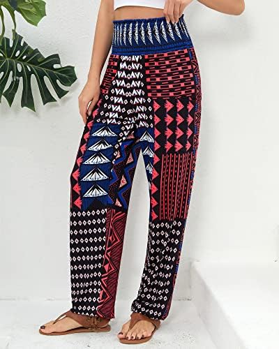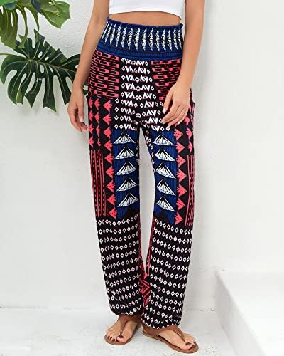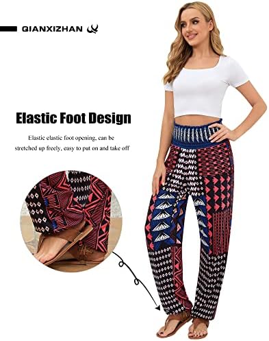 Features: Women harem pants boho palazzo hippie floral yoga trouser, High waist design, with a combination elastic in waist, Elastic waist and ankle. 2 large side pockets. Loose style boho pants fit for many shapes. Simple and classic style.