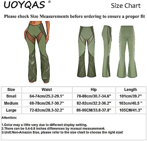 BUY NOW – UOYQAS Women Faux Leather Pants Mesh Sheer Stretchy Patchwork Legging Bell Bottom Pants