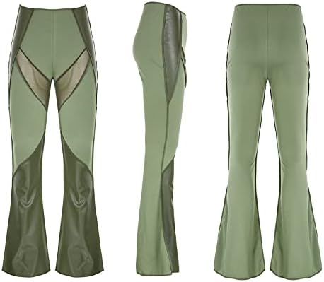 – Feature: patchwork, flare pants, low waist, faux leather, bell bottom pants for women, mesh sheer.