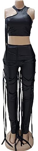 MESLIMA Women’s Bandage 2 Piece Set: Irregular Tank Top and Lace Up Bodycon Pants for Clubwear