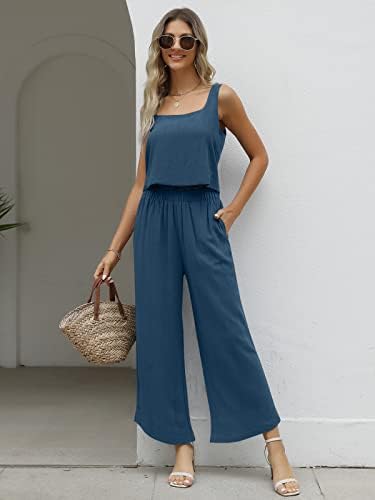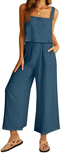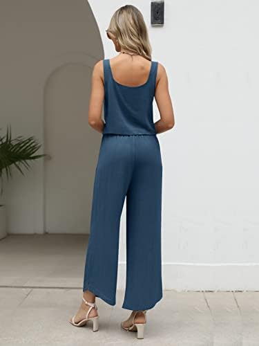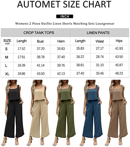AUTOMET Women 2 Piece Linen Lounge Sets with Wide Leg Pants – 2023 Fashion