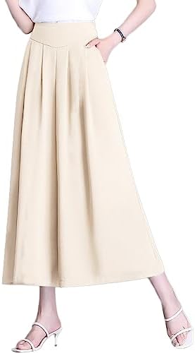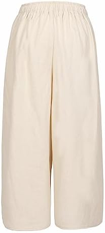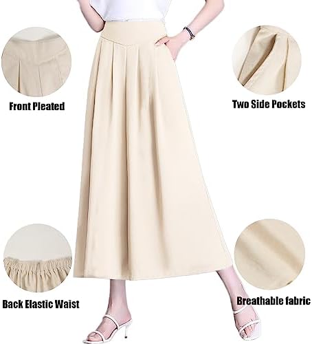 ThCreasa Women’s Elastic Waist Culottes with Pockets: Stylish Cotton Linen Wide Leg Pants