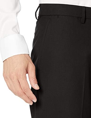 The Amazon Essentials line focuses on creating affordable, high-quality, and durable everyday clothing for men. The range includes polo shirts, chino pants, classic-fit shorts, casual button-downs, and crew-neck tees. The sizing is consistent, making it easier to shop, and each piece is tested to ensure the highest standards of quality and comfort. The package dimensions are 12.9 x 12.4 x 1.5 inches and the weight is 10.41 ounces. The item model number is AE1816752. It is available for purchase since November 29, 2019, and the manufacturer is Amazon Essentials. The ASIN is B07RMLM3XK. The product is imported and features a button closure. It is machine washable. The pants have a classic fit, roomy through the hip and thigh with a straight leg, and sit at the waist. They are made from a polyester-blend fabric that is stretchy and wrinkle-resistant for better movement and comfort. These dress pants provide a clean and modern look suitable for any occasion and can be paired with Amazon Essentials Men’s Derbies and leather belts for accessorizing.