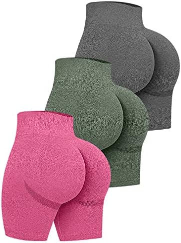 OQQ Women’s 3 Piece High Waist Workout Shorts: Butt Lifting, Tummy Control, Ruched Booty Smile Yoga Short Pants