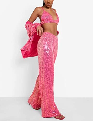 – Arssm Womens Sequin Pants High Waisted Wide Leg Bling Pants