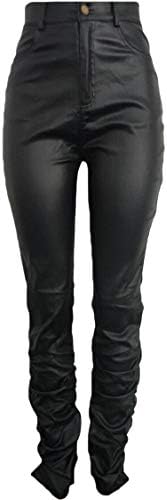 The product is PU Solid Middle High Waist Stacked Pants for Women Faux Leather Ruffle Ruched Bottom Leggings Pants. It has dimensions of 12.4 x 9.2 x 2.1 inches and weighs 1.05 pounds. The item model number is GLNLP190069BL-XXXL. It is designed for women and was first available on December 25, 2019. The manufacturer is Guolezeev and the ASIN is B0833YDRH5. It can be machine washed. The package includes one pair of women’s high waisted stacked PU pants (order one size up if you are above medium). The pants feature a high rise drape design with a zipper fly, button closure, solid color, and frill hem. The stacking design at the bottom adds a fashionable touch to the pants. The high waisted leggings slim the sides and make you look slimmer and taller. The pants are made of stretch PU fabric, making them comfortable to wear all day. They are suitable for various occasions such as street, hip hop, disco, dating, prom, vacation, holiday, party, club, bar, music festivals, gathering, and outdoors.